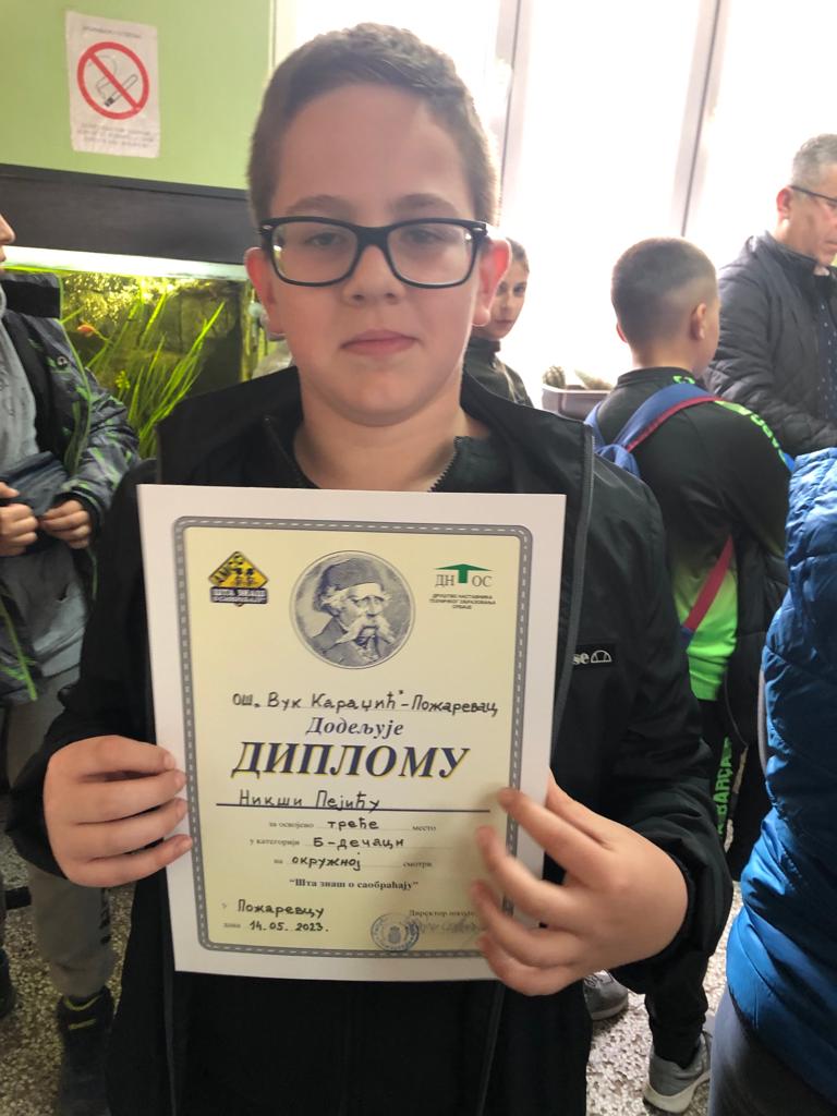 Ученици ОШ  "Угрин Бранковић" из Кучева освојили су треће место  на Окружном такмичењу Шта знаш о  саобраћају, које се одржало 14.5.2023. у Пожаревцу.